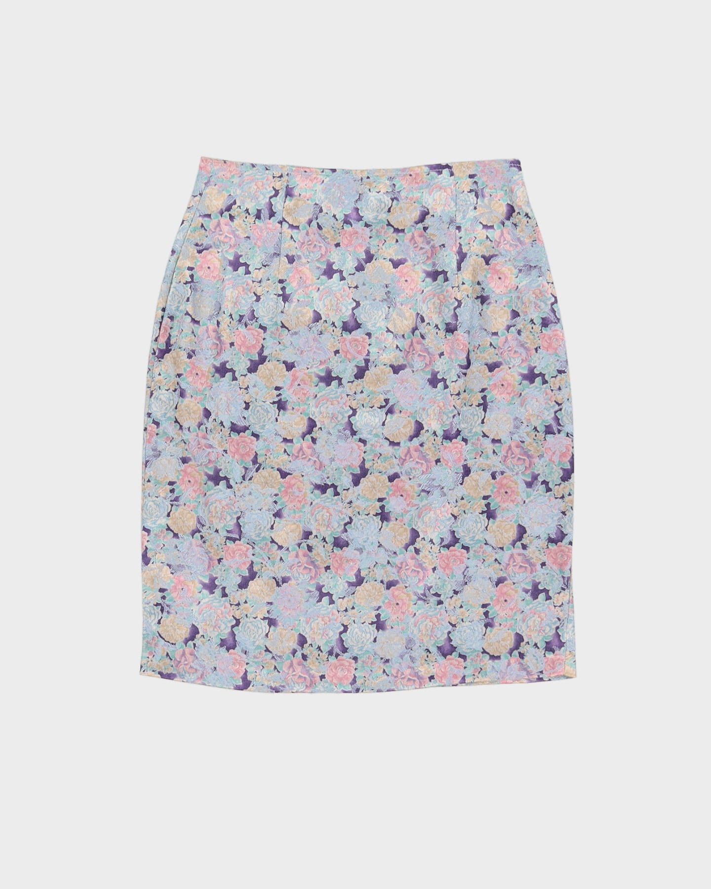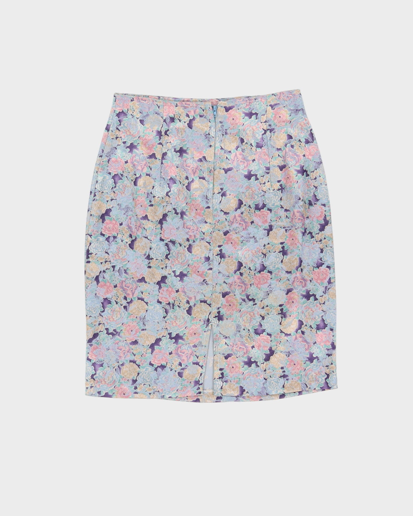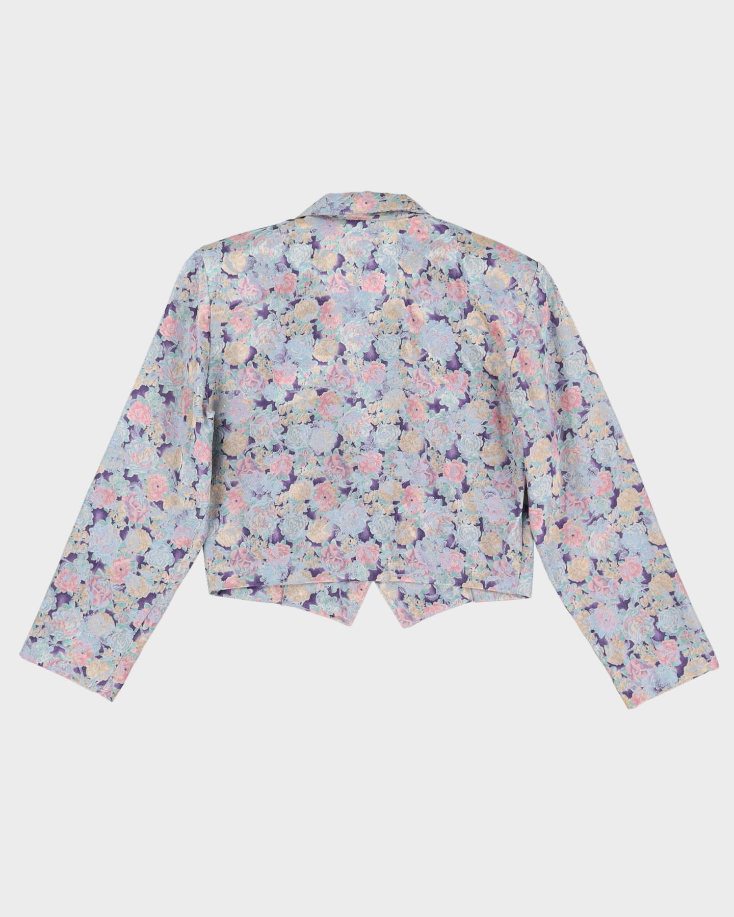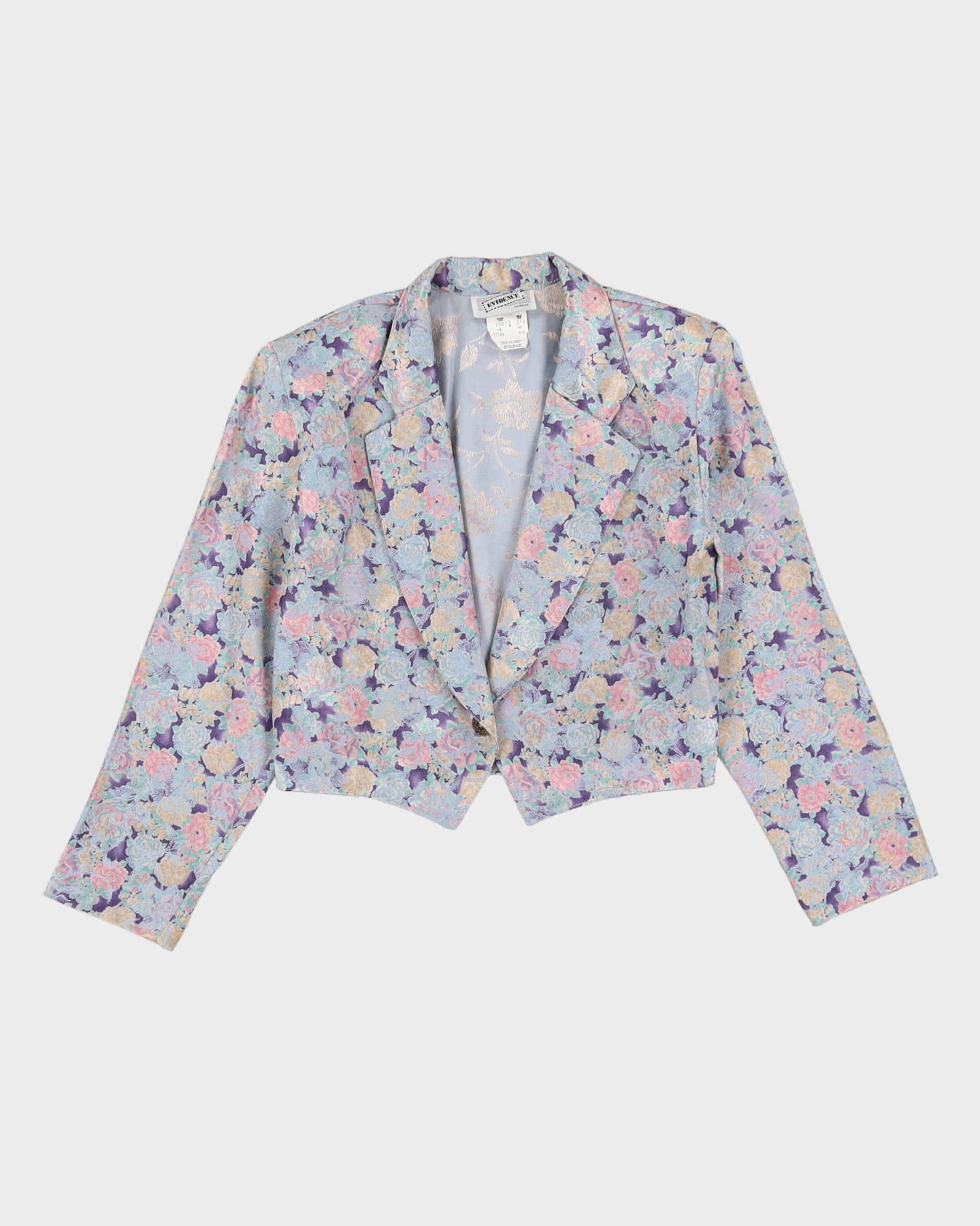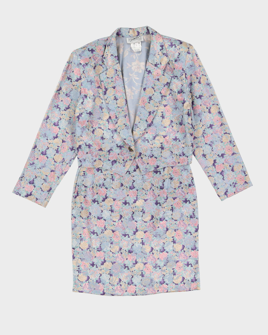 00s Blue Floral Patterned Jacket And Skirt Suit - S
