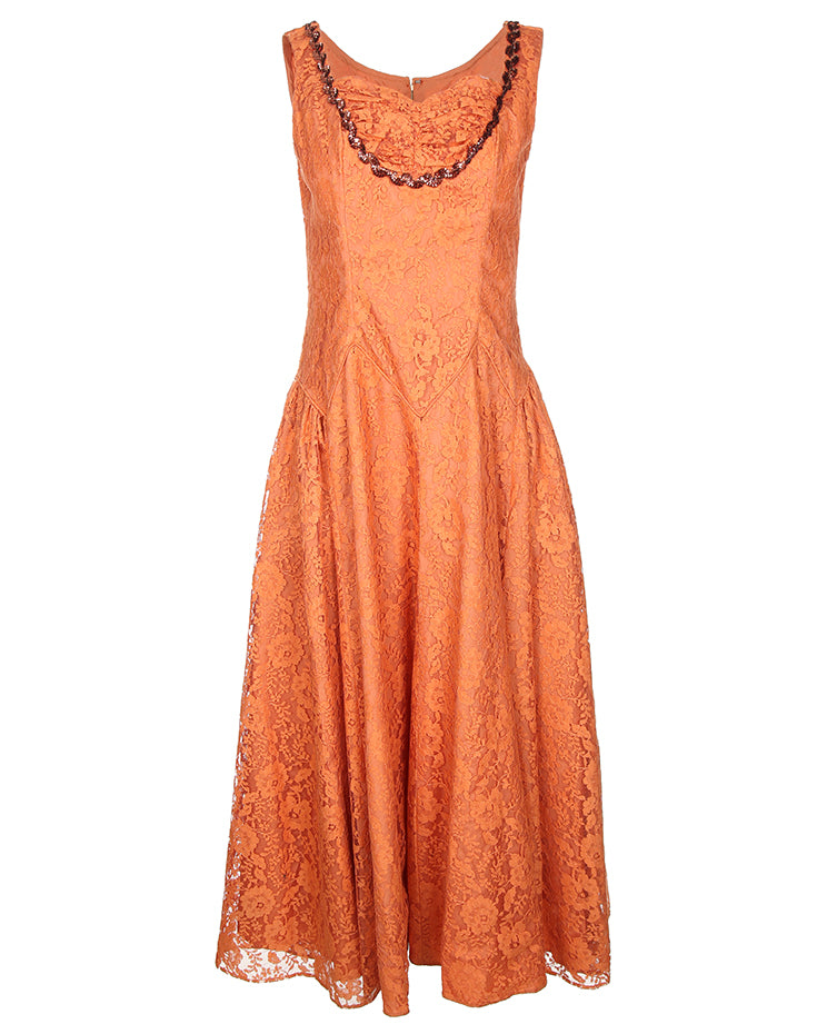 Centre back metal zip fastening with hook and eye at the back of the neck.
