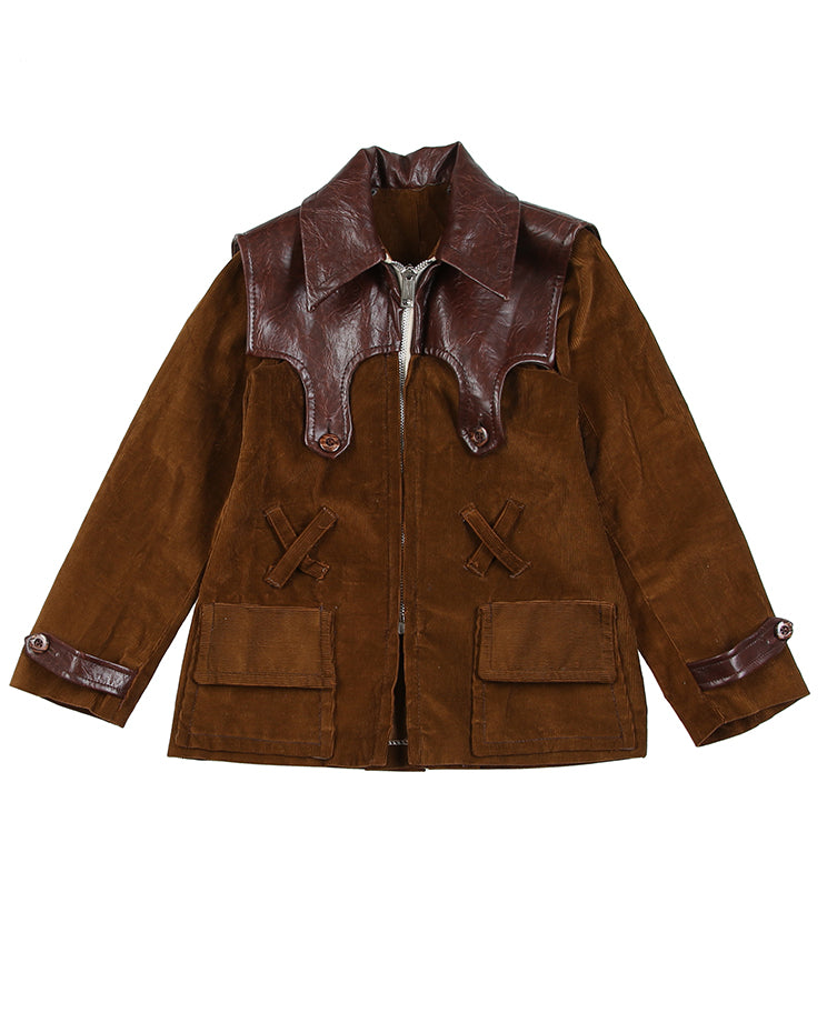 Super groovy late 1960s/70s chocolate corduroy jackt with vinyl detail.