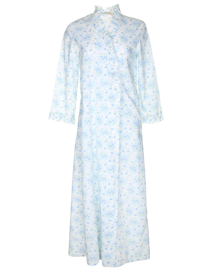 Ruffles all the way along the neckline towards the bottom and on the cuffs.