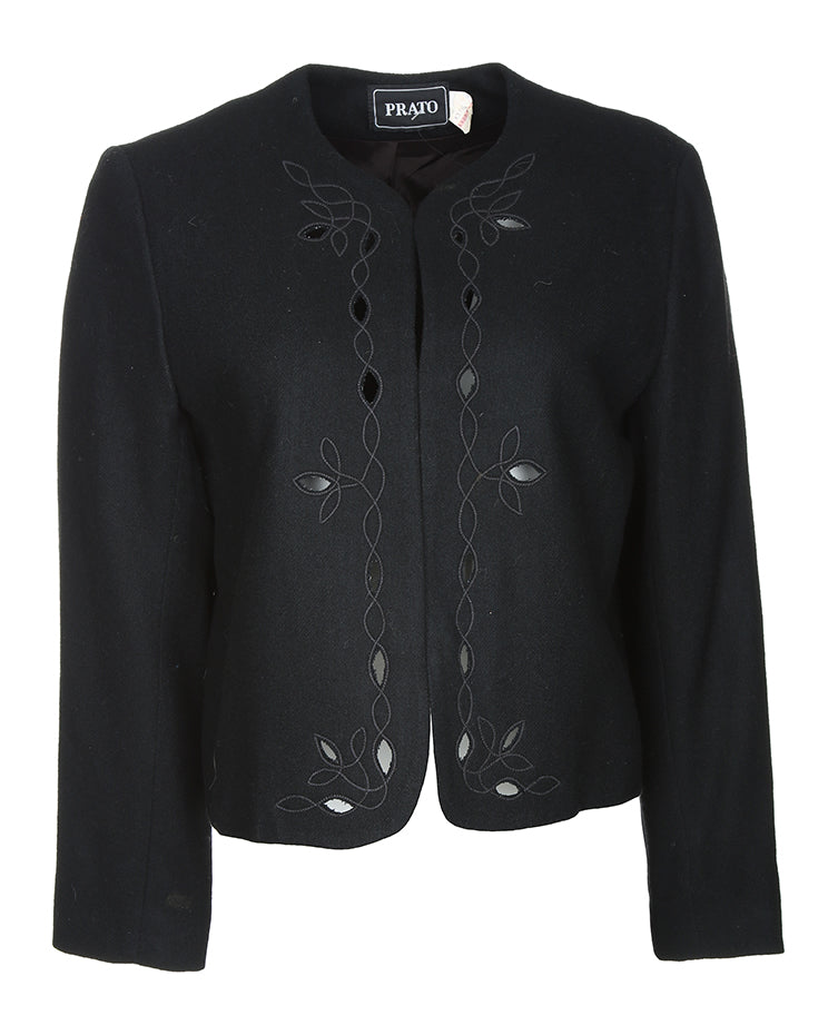 1990's Black Wool With Cut Out Embroidery Blazer Jacket - M