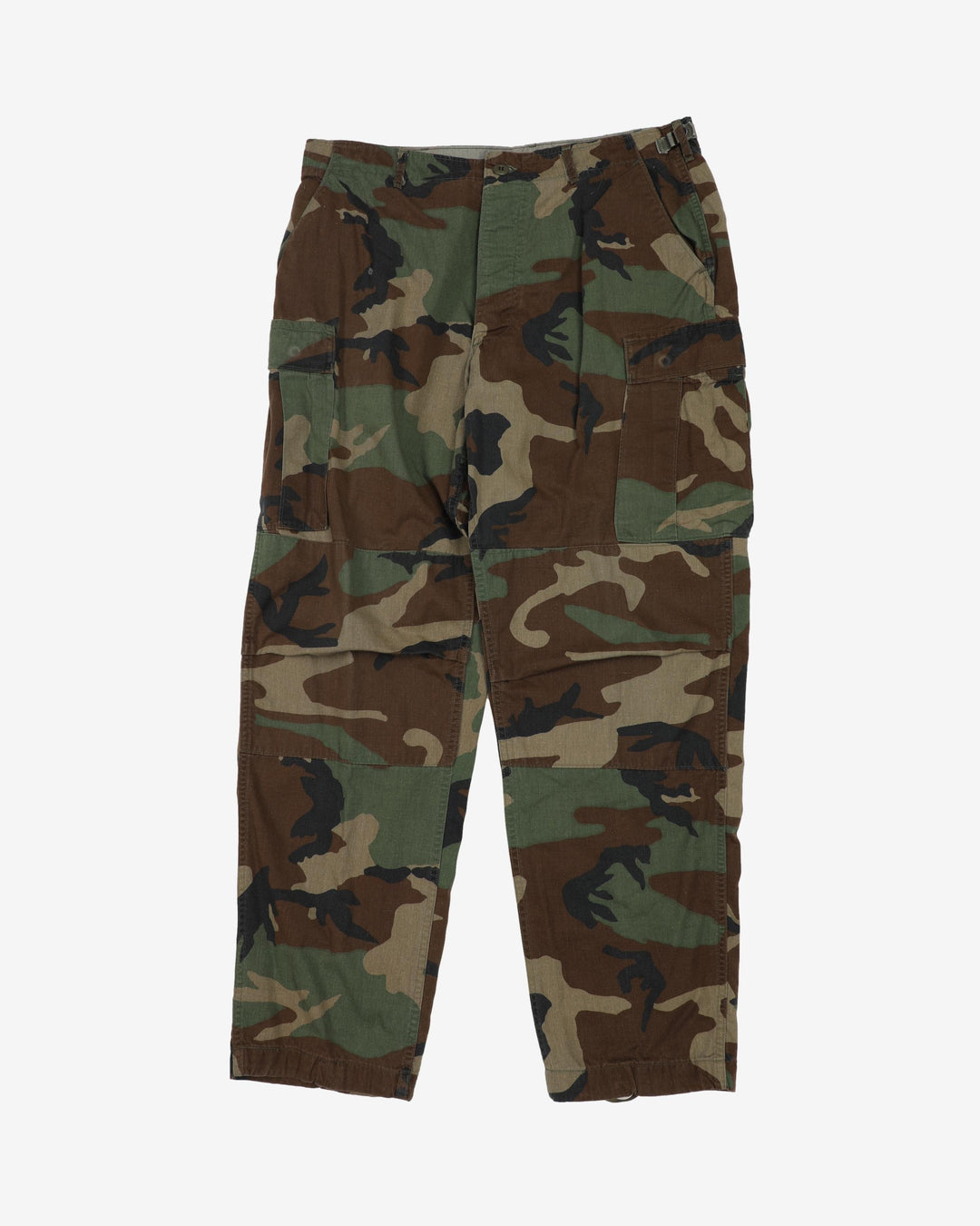 1990s Vintage US Army Woodland Camo BDU Combat Trousers - 34x32