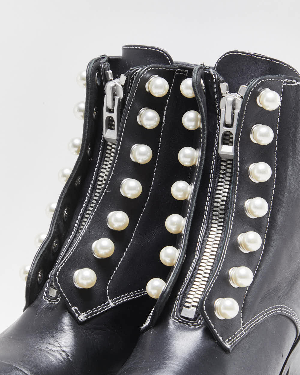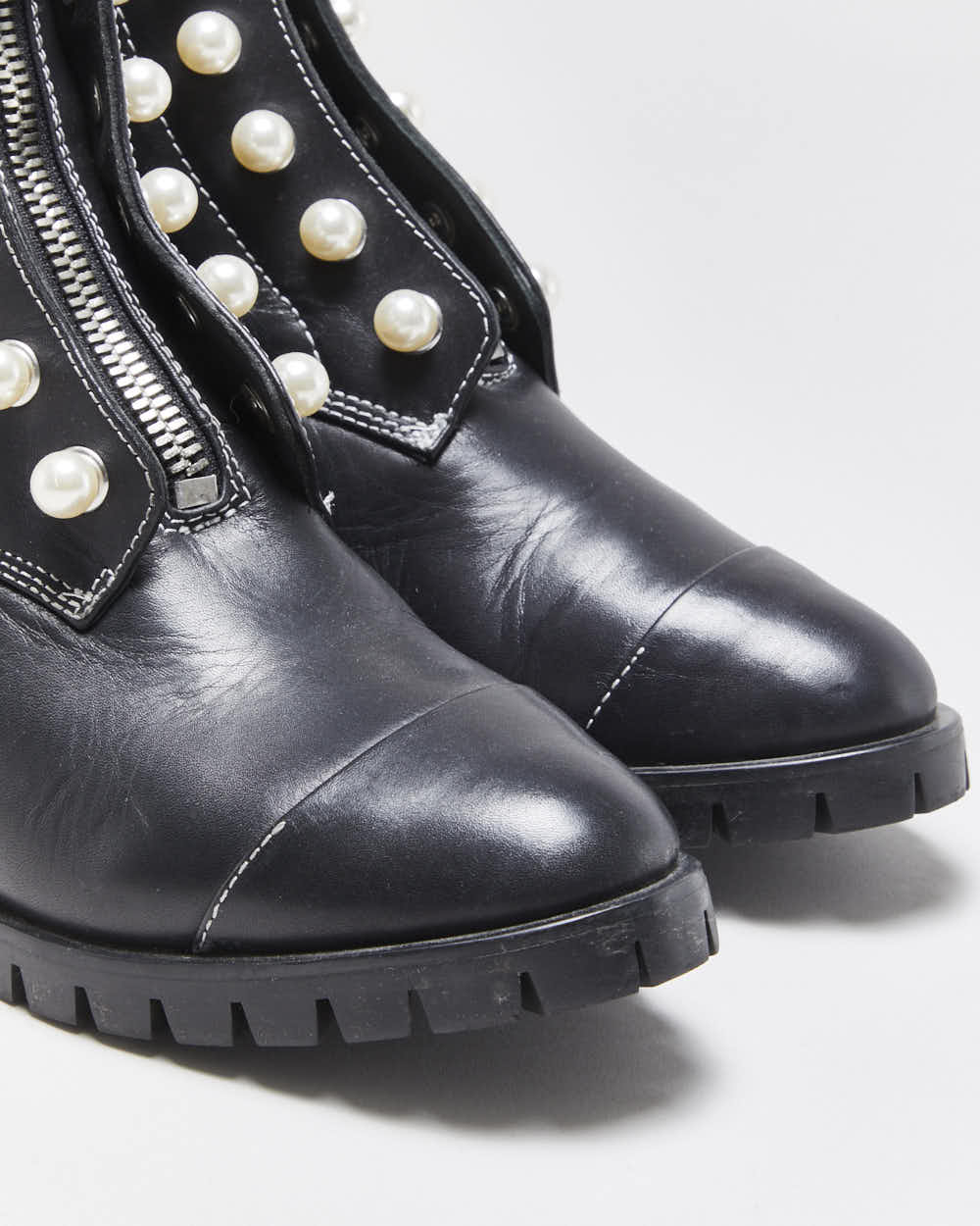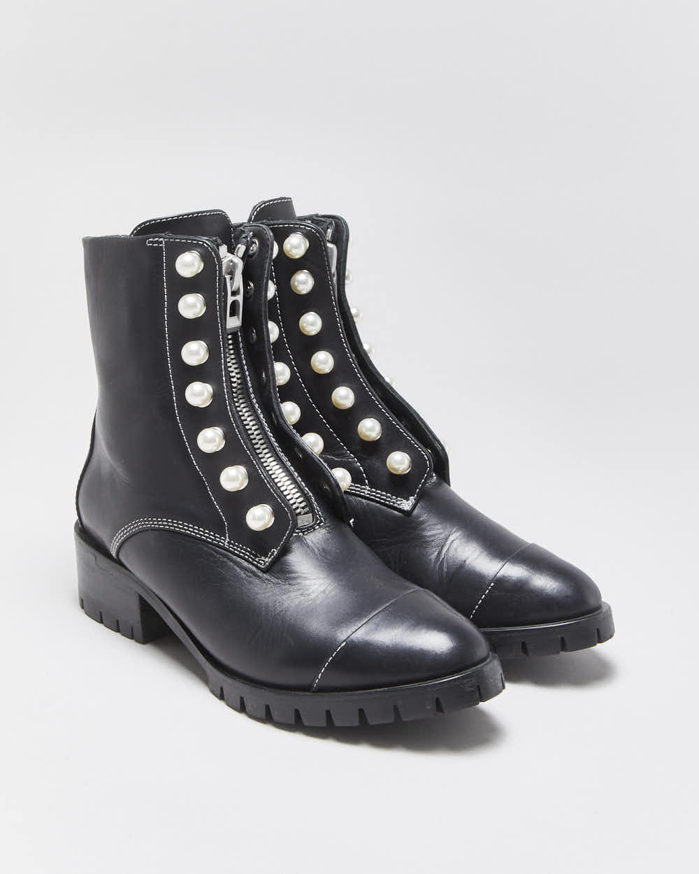 3.1 Philip Lim Women's Leather Lug Pearl Zipper Combat Boots - UK6