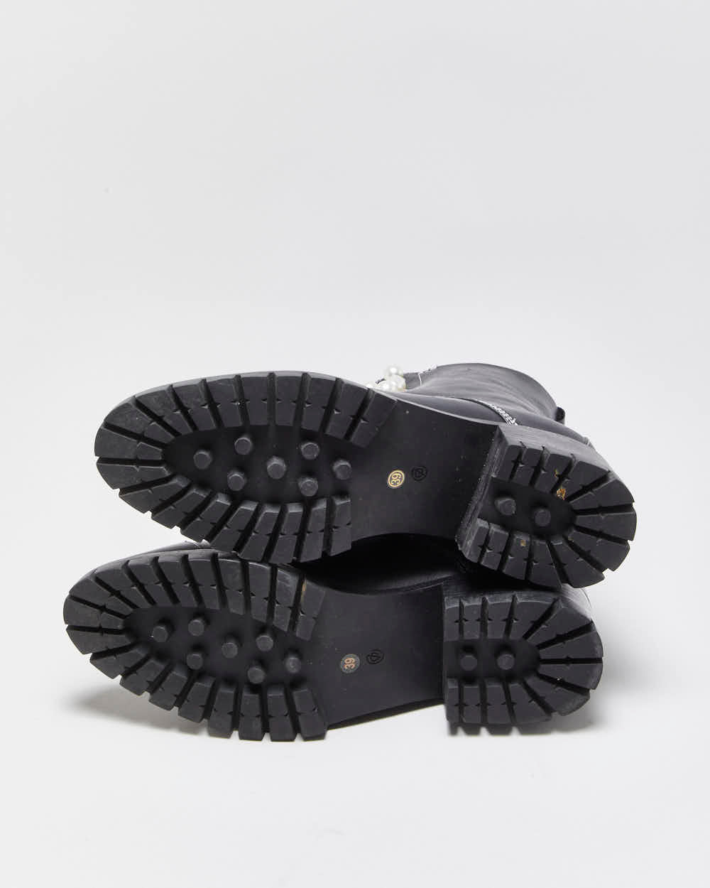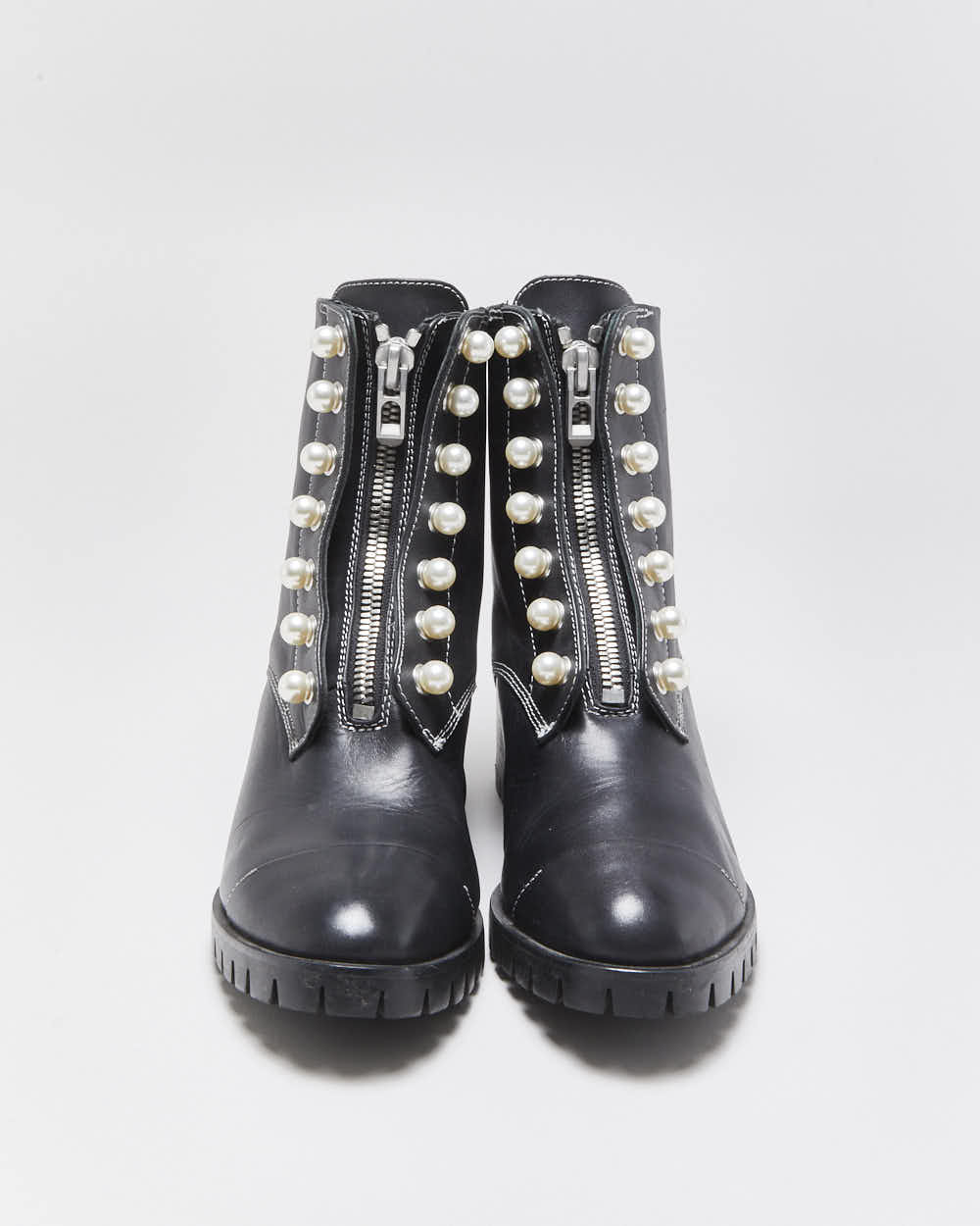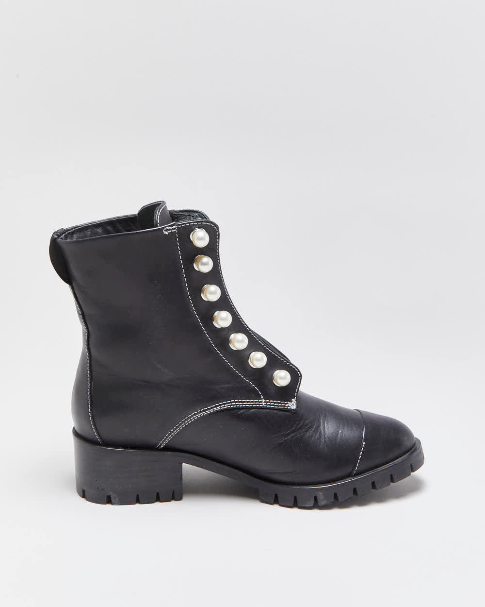 3.1 Philip Lim Women's Leather Lug Pearl Zipper Combat Boots - UK6