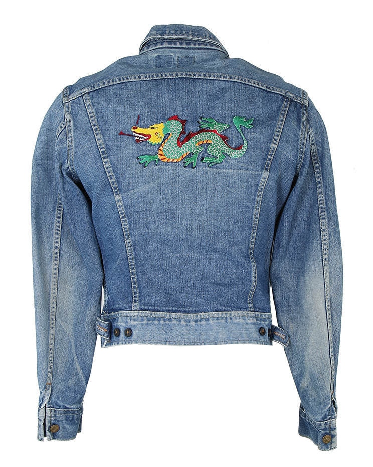 70s Lee Riders Sanforized Jean Jacket with Embroidered Dragon - M