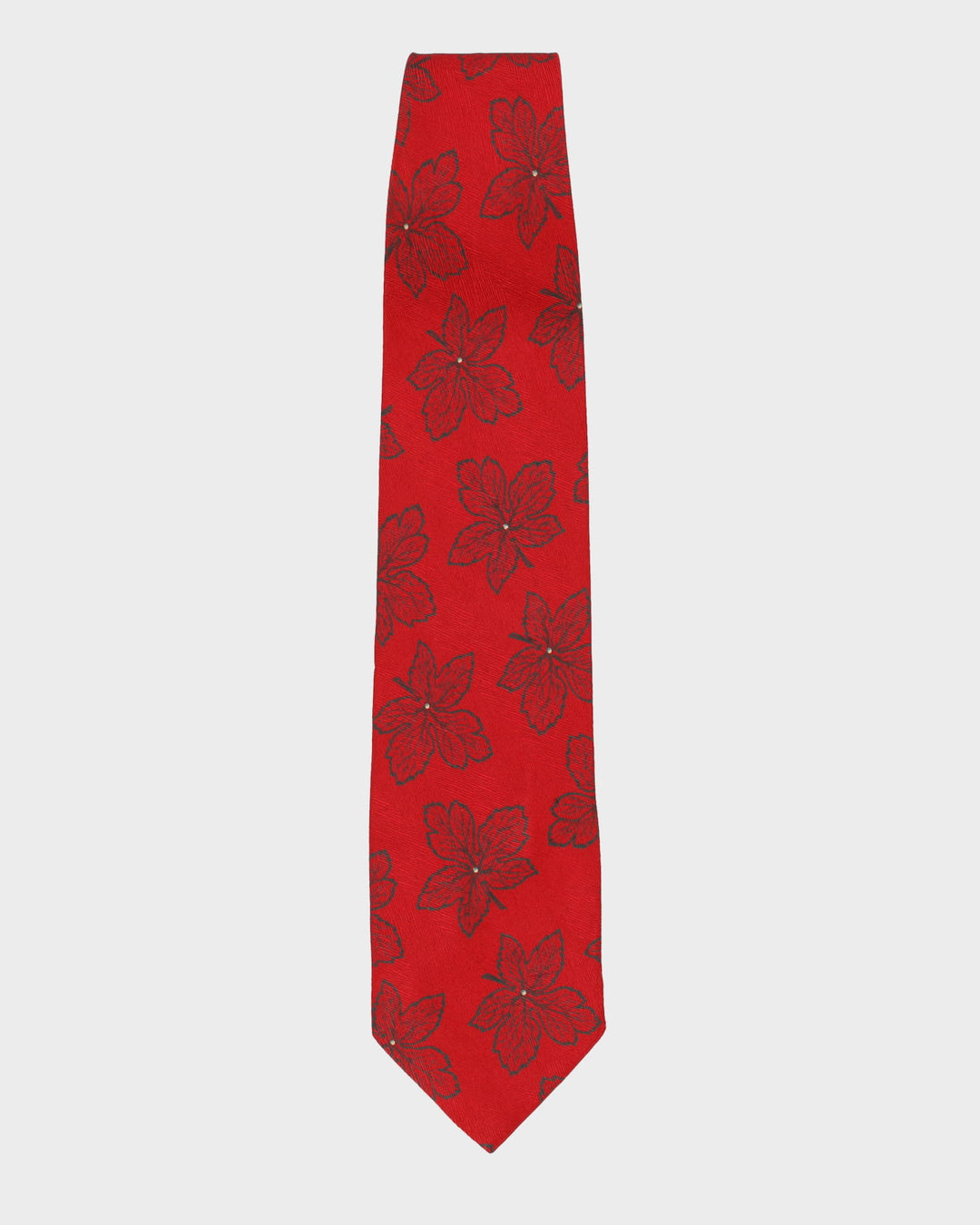 80s Giorgio Armani Red Floral Patterned Silk Tie