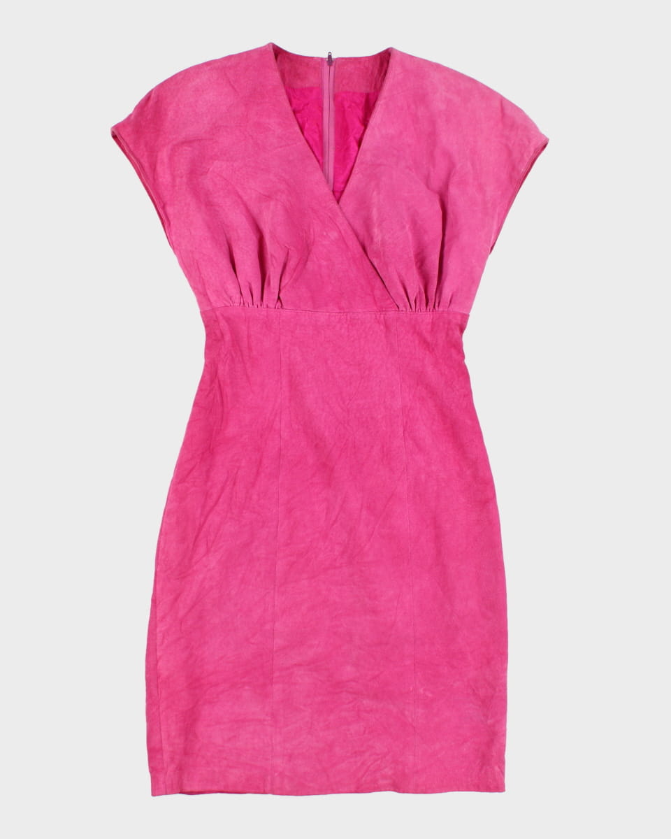 80's Leather Suede Hot Pink Pencil Dress - XS