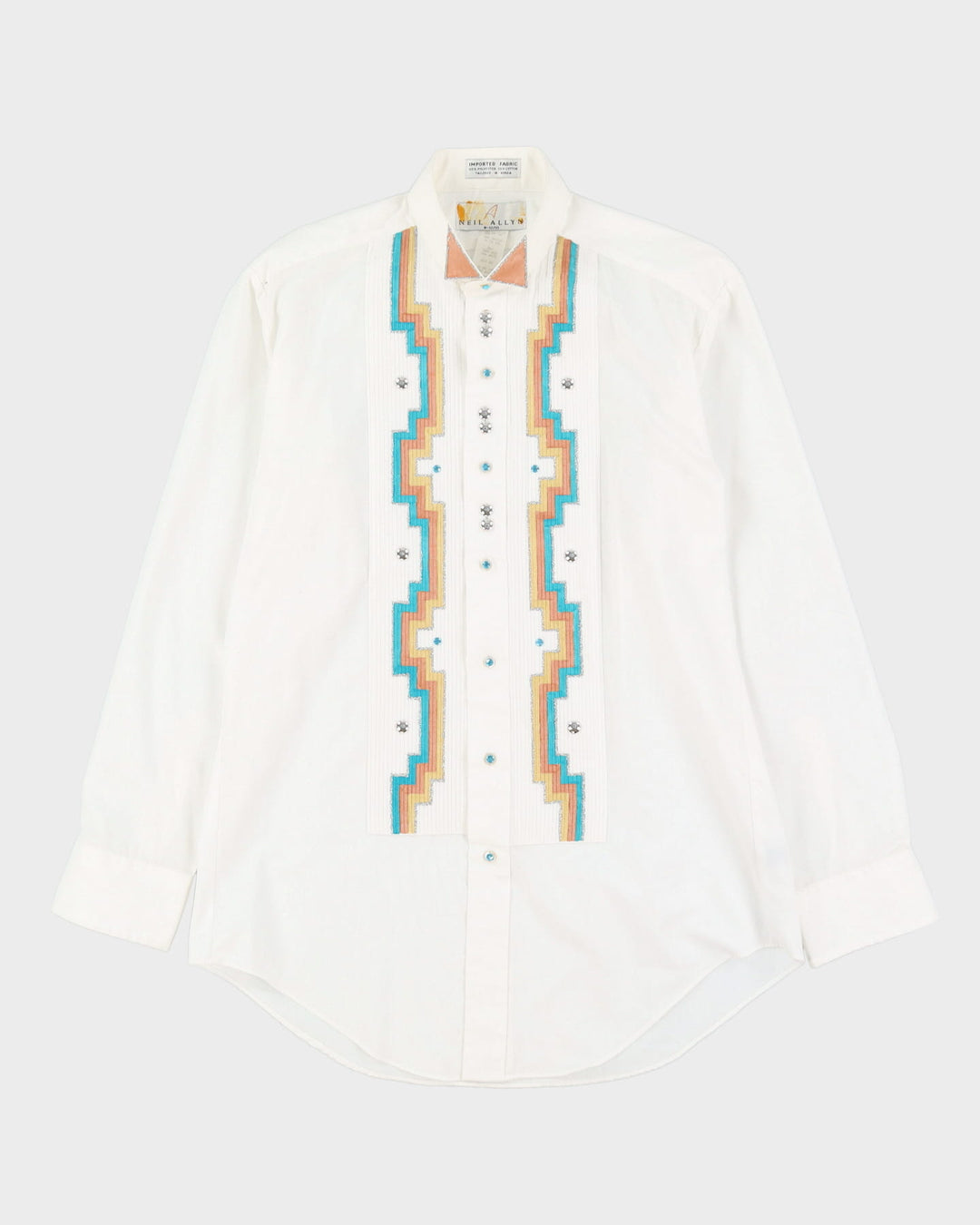 80s Neil Allyn White Patterned Western Style Shirt - M