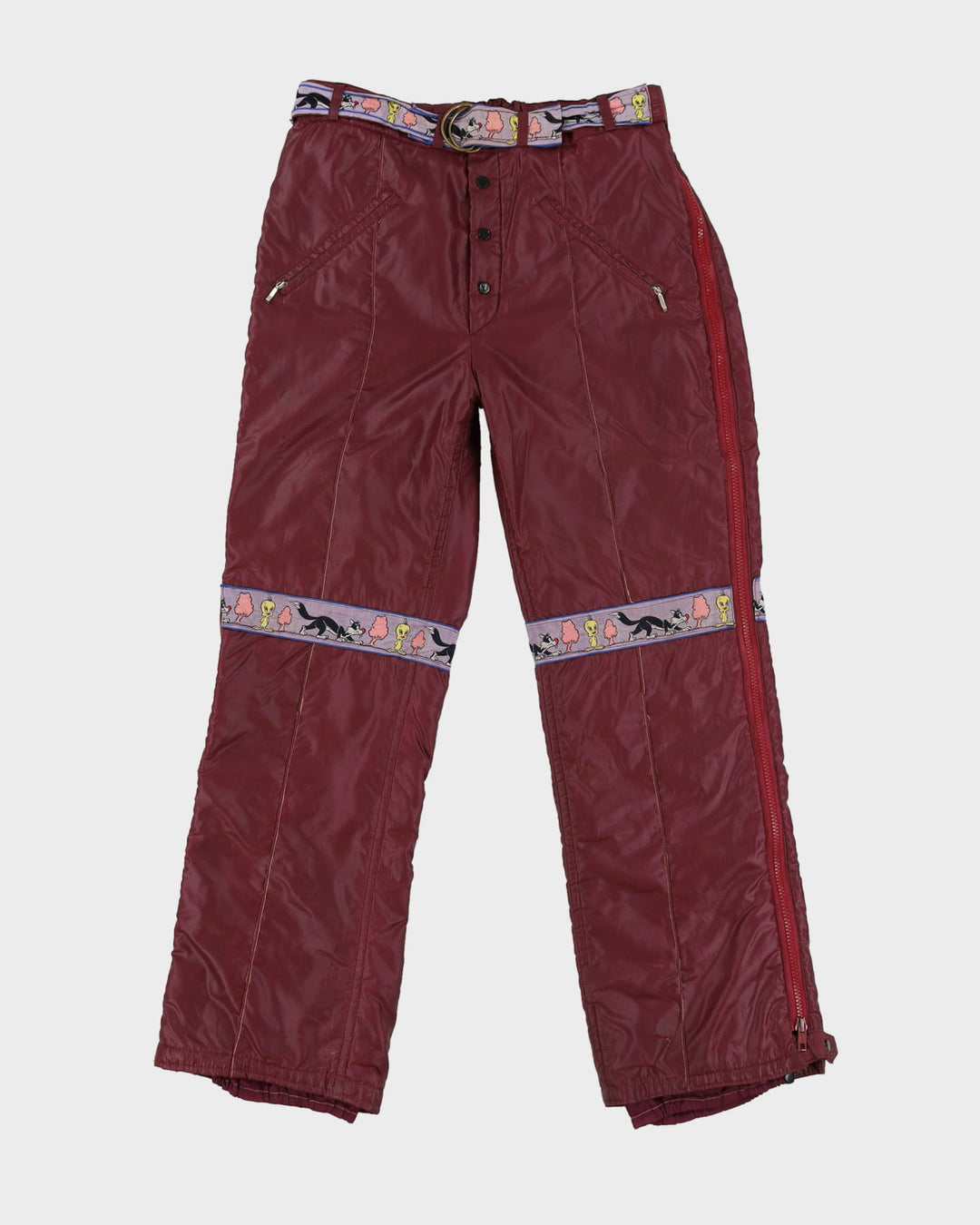 90s Looney Tunes Burgundy Ski-Pants / Tracksuit Bottoms - S