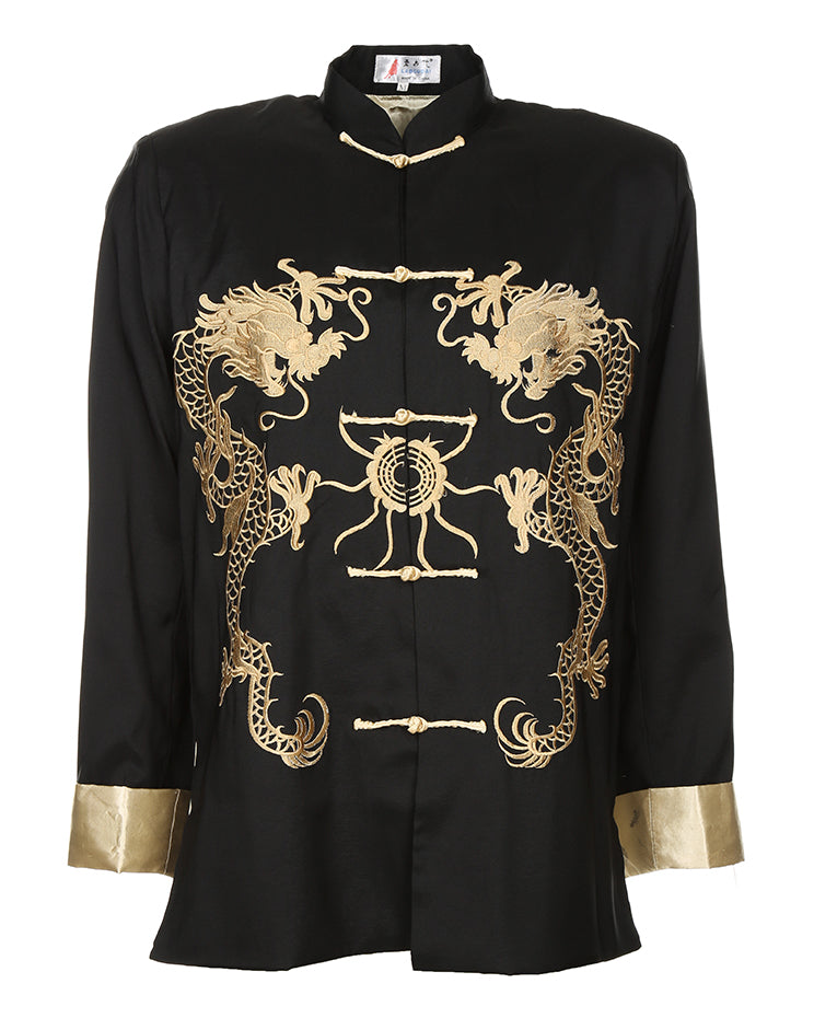 Black With Gold Dragon Embroidery Chinese Jacket - L / XL