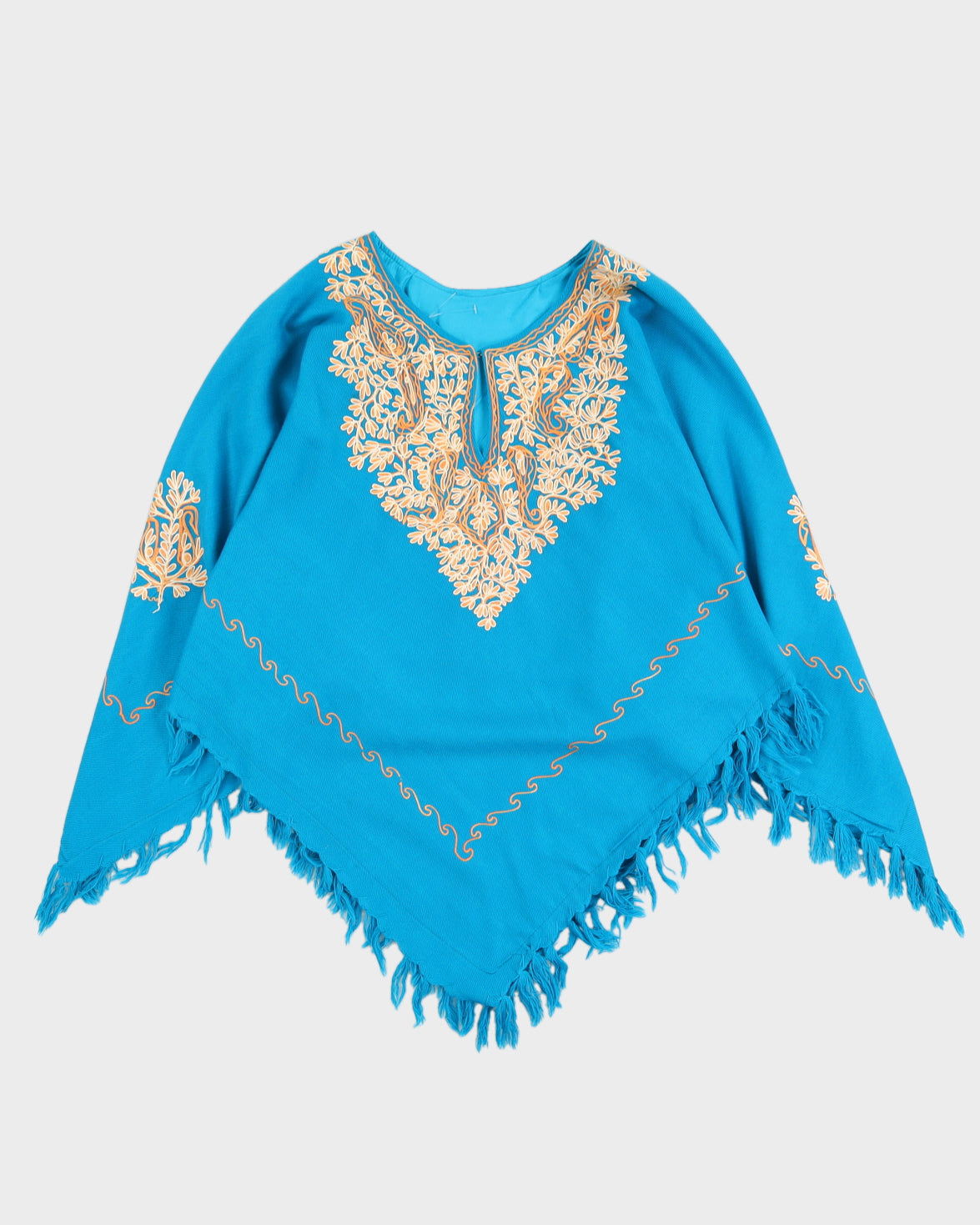 Blue Kashmiri Embroidered Poncho - S