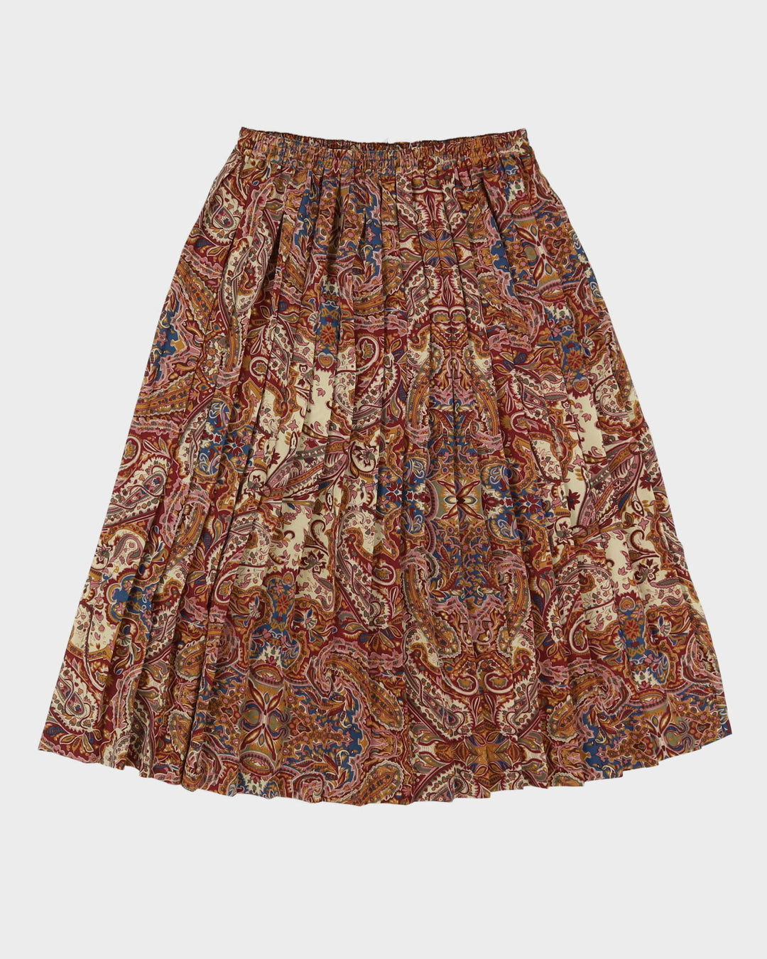 Burgundy Patterned Pleated Midi Skirt - S