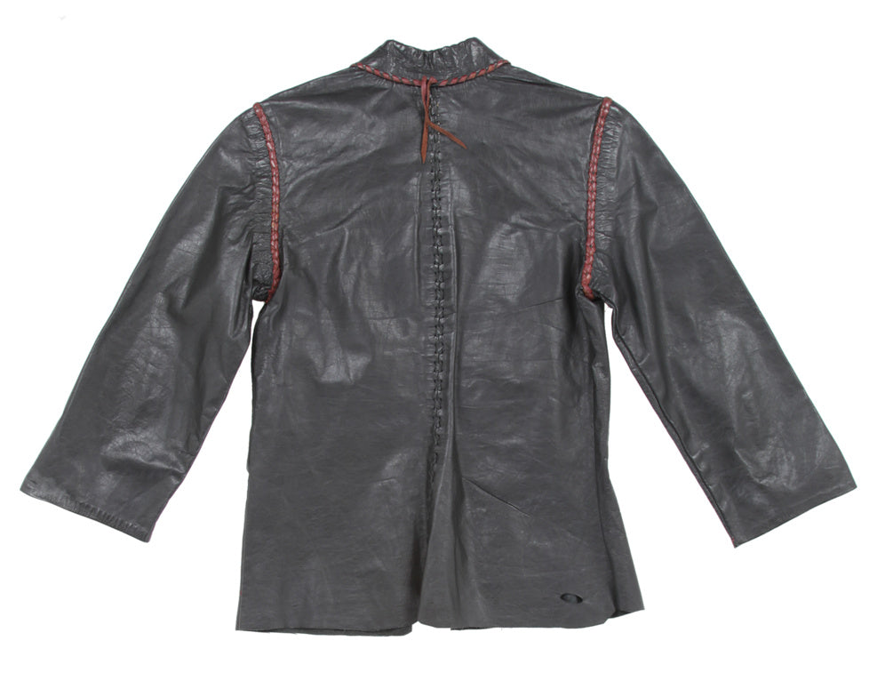 Classic Americana top with a Wild West feel. Black leather with plaited red leather trims. Chest panel attatched with toggle fastenings. A truely unique item!