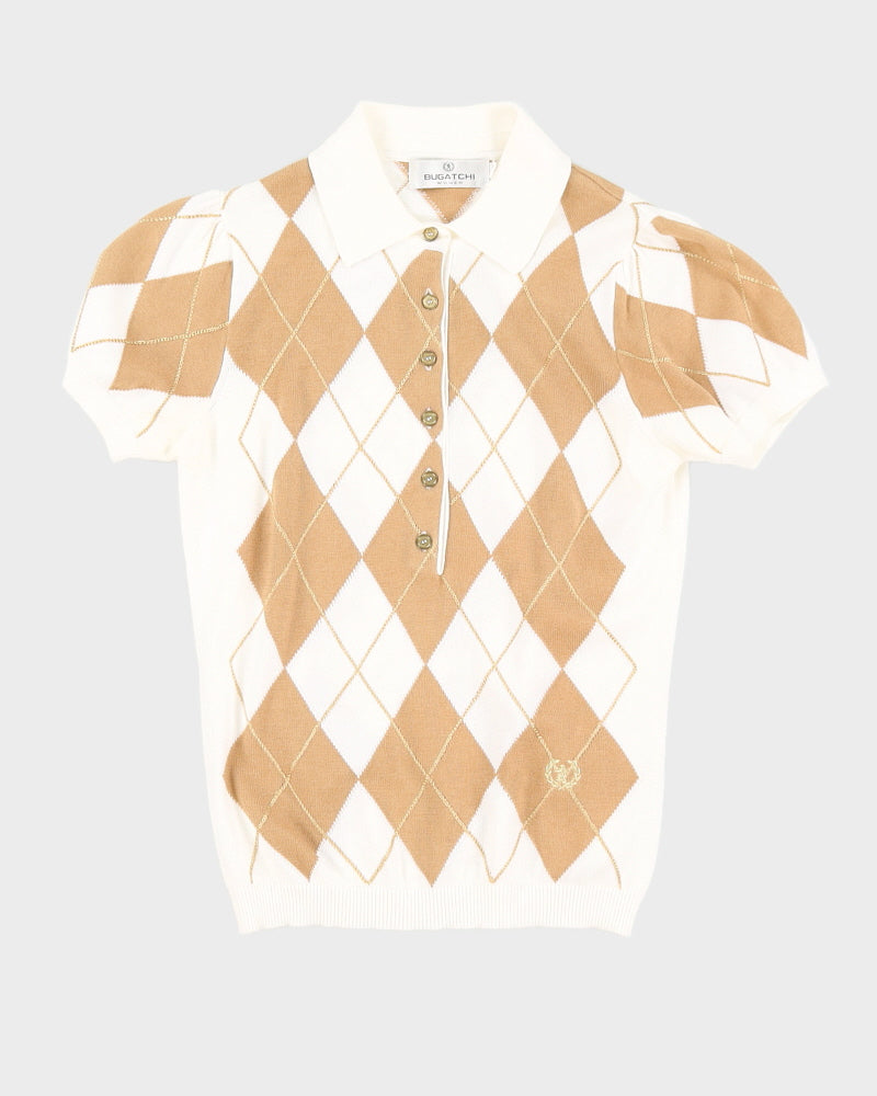 Cream And Beige Harlequin Patterned Knitted Jumper - XS