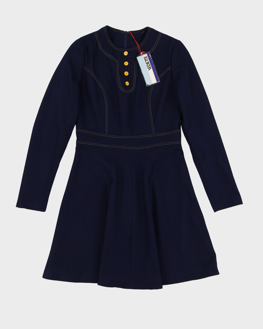 Deadstock 1970s Blue Long Sleeve Dress - S
