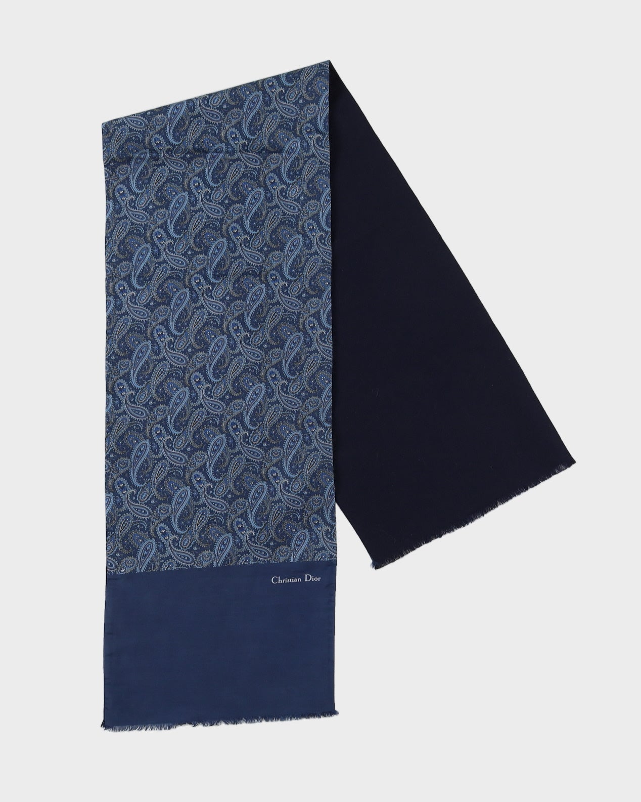 Dior blue paisley silk with a navy wool back scarf.