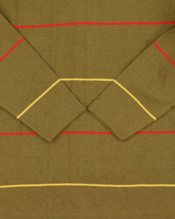 DSWT Vintage 1980s Benetton Khaki Striped Tennis Long Sleeve Polo Shirt - S