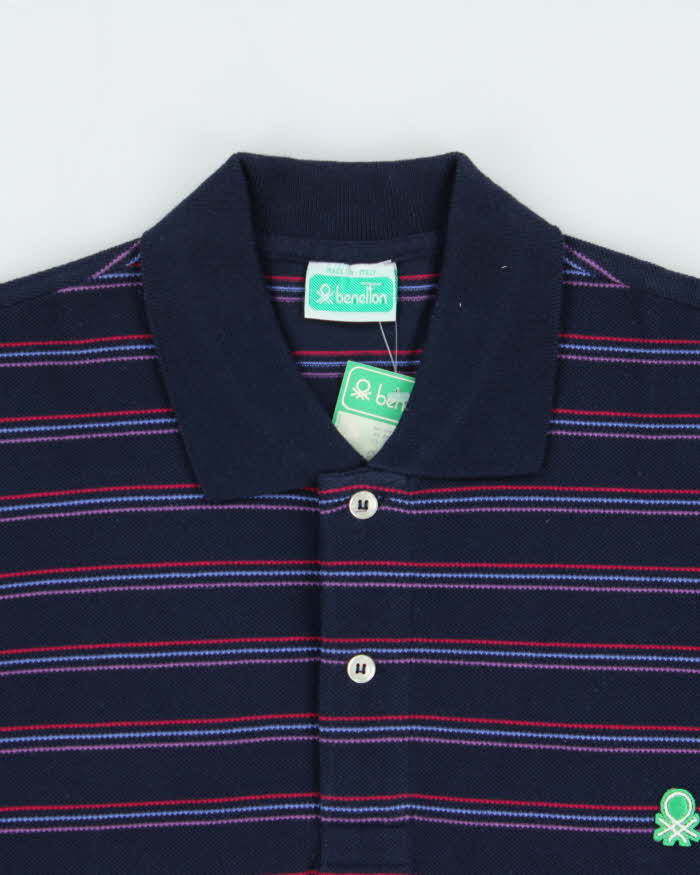 DSWT Vintage 1980s Benetton Striped Tennis Short Sleeve Polo Shirt - L