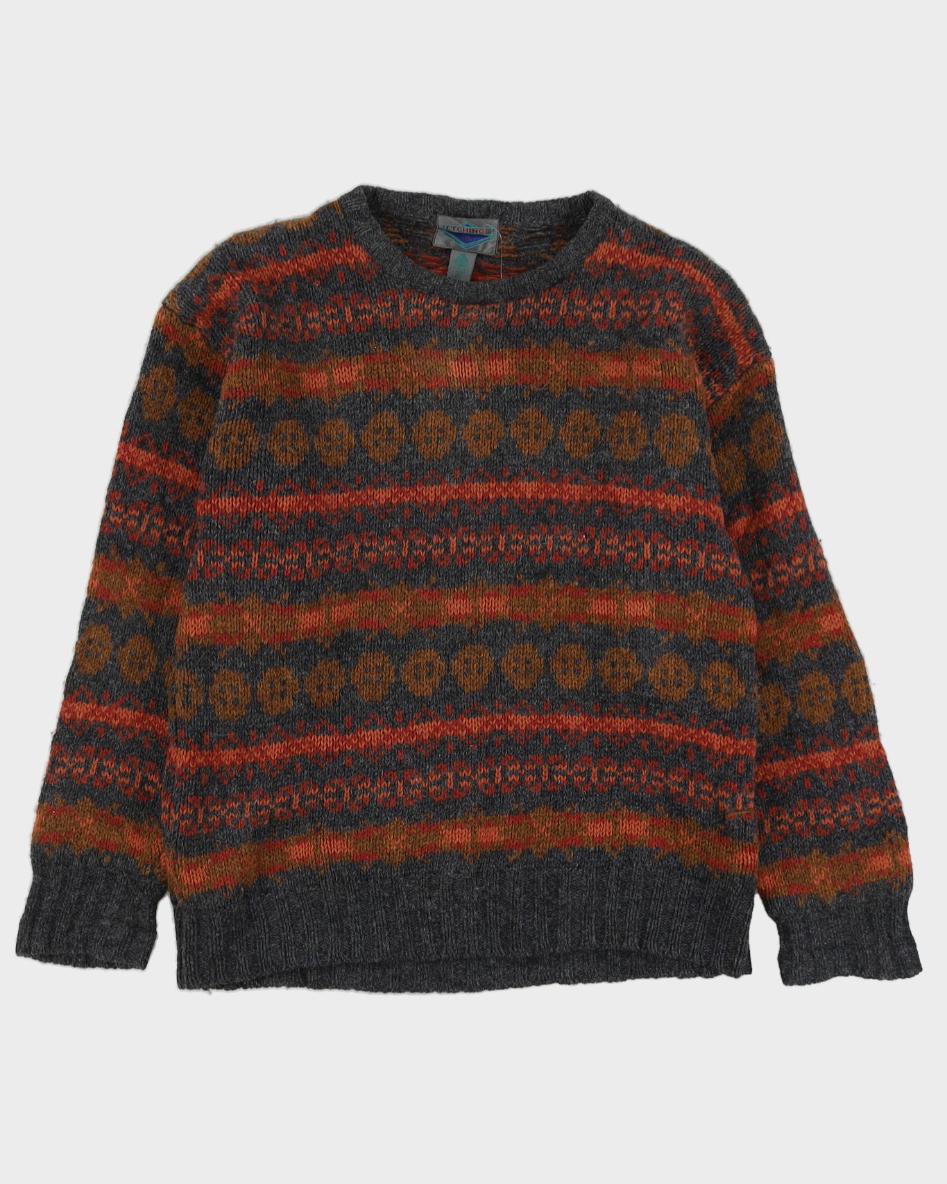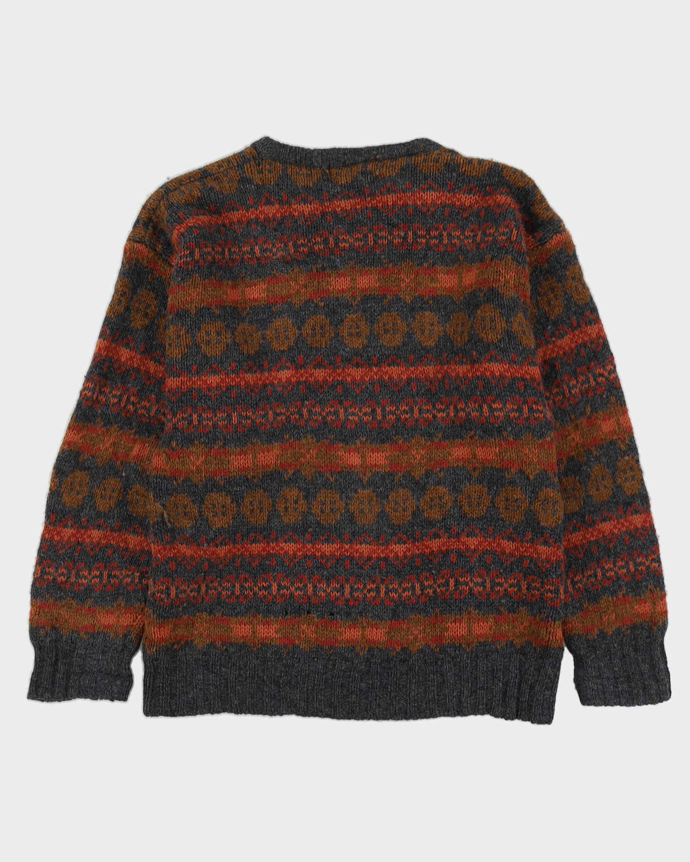 Grey And Orange Patterned Knitted Jumper - L