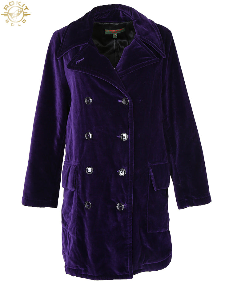 A purple velvet coat from designer Katherine Hamnett's Denim range.