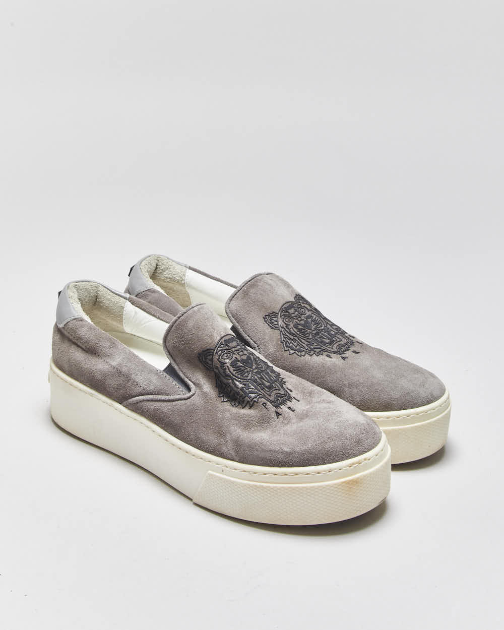 Kenzo Tiger Grey Suede Women's Platform Slip-On Trainers - UK5
