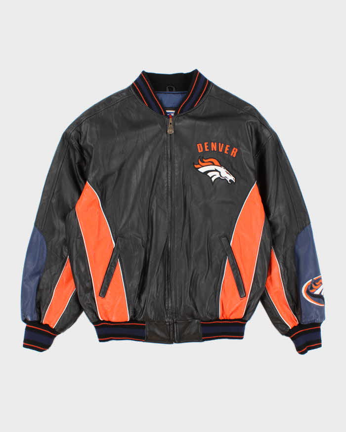 Mens Black and Orange Leather Denver Broncos Jacket - M