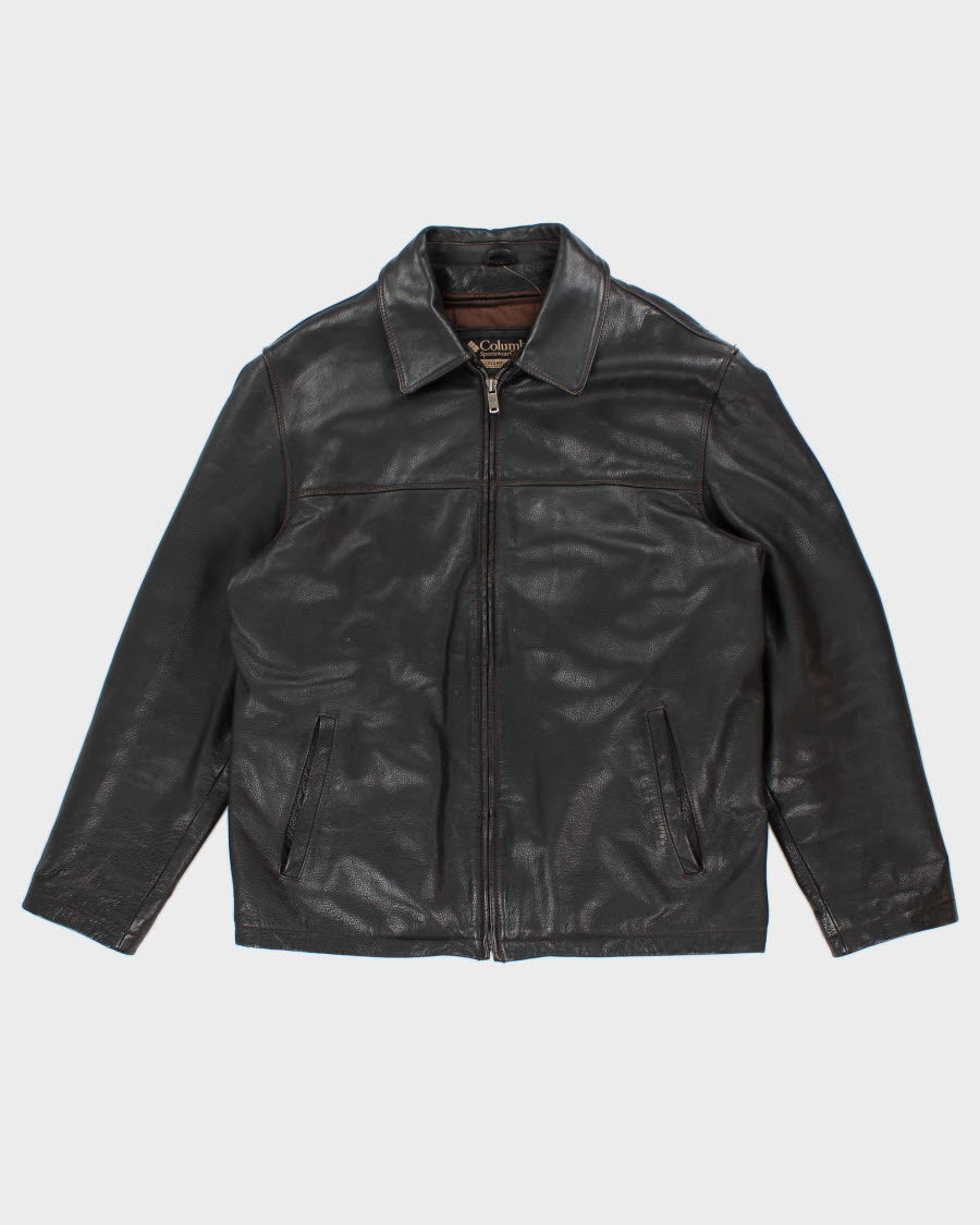 Mens Black Leather Columbia Leather Zip Up Jacket - L