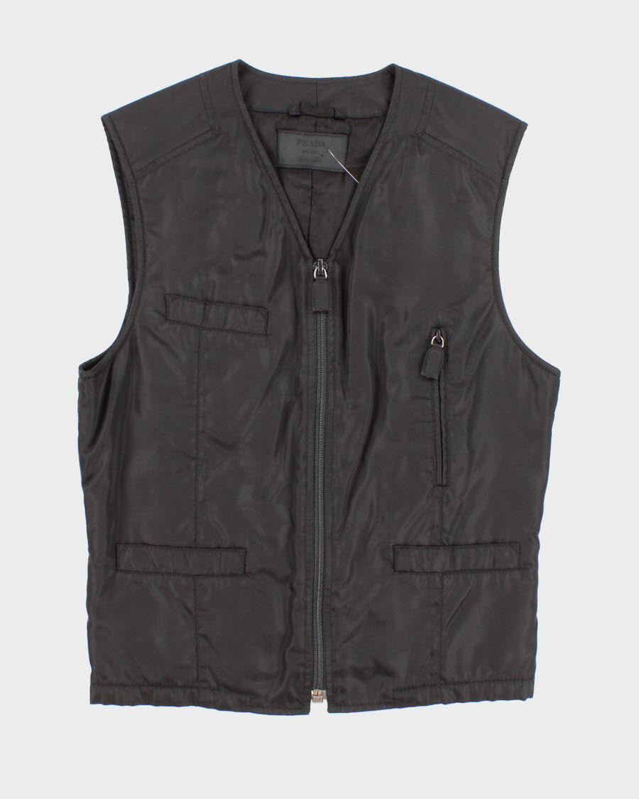 Mens Black Nylon Prada Zip Up Vest - S