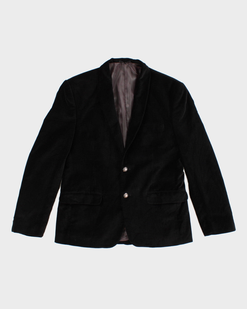Vintage 90s Black Velvet Single Breasted Suit Jacket - M