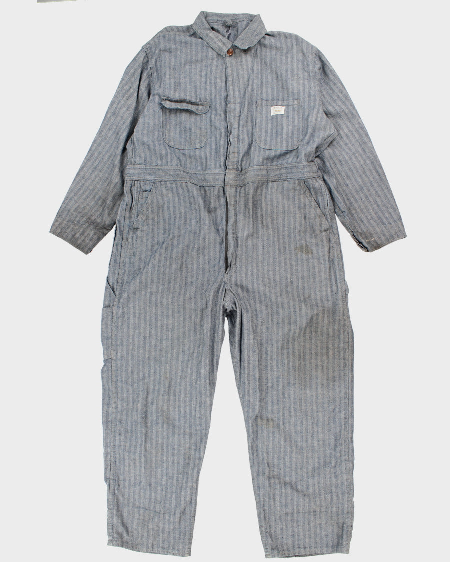 Mens Blue Herringbone Denim One Piece Work Jumpsuit - XL