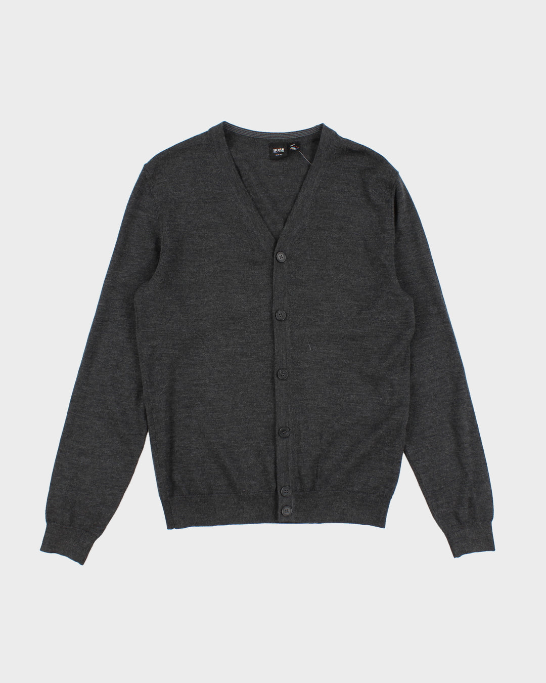 Mens Charcoal Grey Hugo Boss Slim Fit Cardigan - S