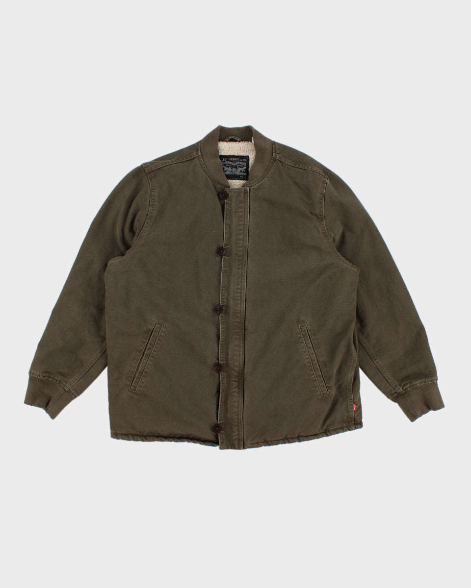 Mens Khaki Green Levi's Canvas Fleece Lined Jacket - XL