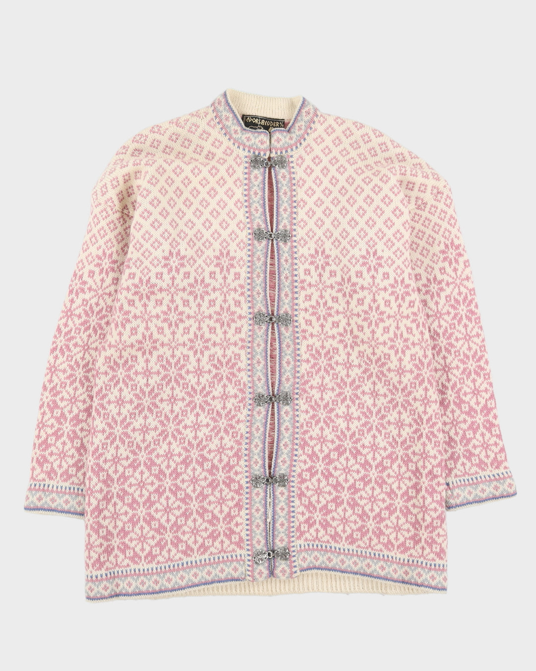 Norwegian Pink Patterned Knitted Cardigan - L