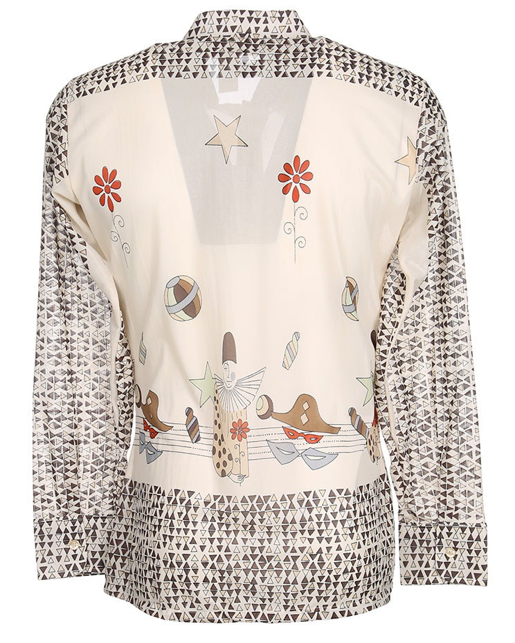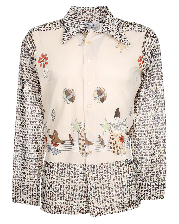 A rare original 70's unworn deadstock graphic disco shirt by Burma at Oleg Cassini. Featuring a fantastic vibrant graphic print with button front and dagger collars. Grab your 70's icon before they are all gone!