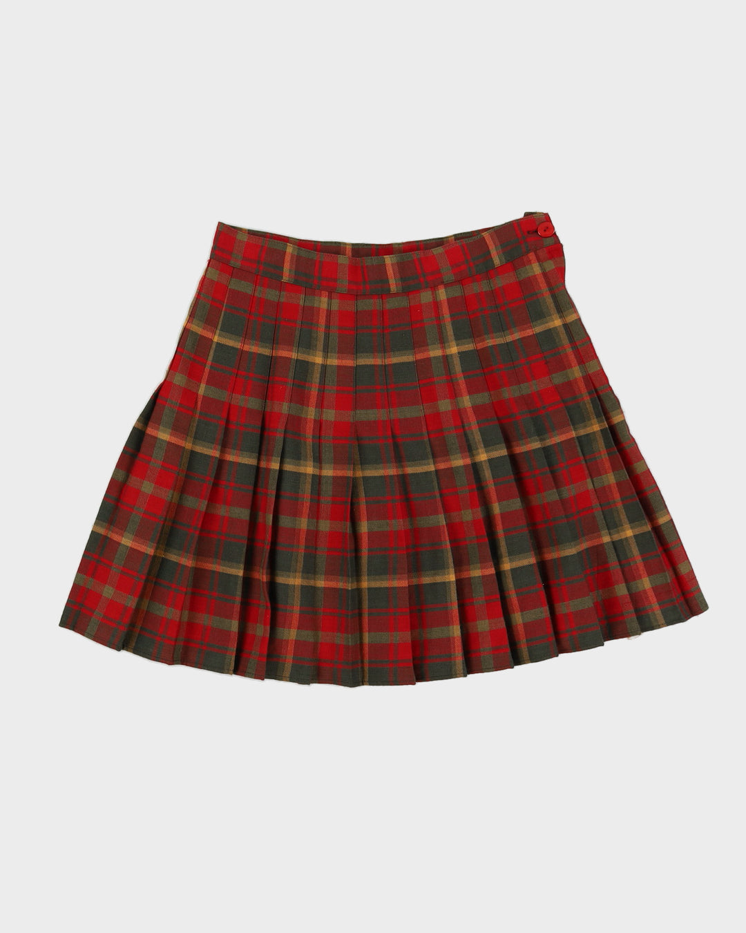 Red And Green Checked Pleated Skirt - M