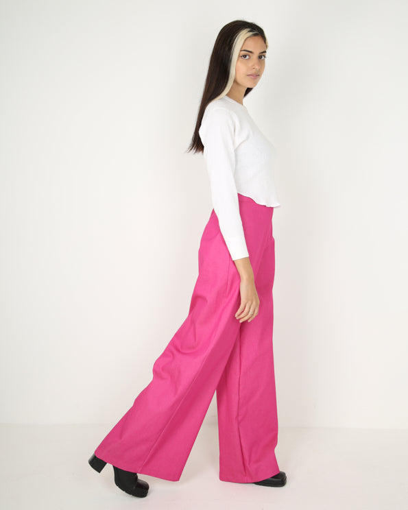 MADE FROM: Shocking pink stretch denim.