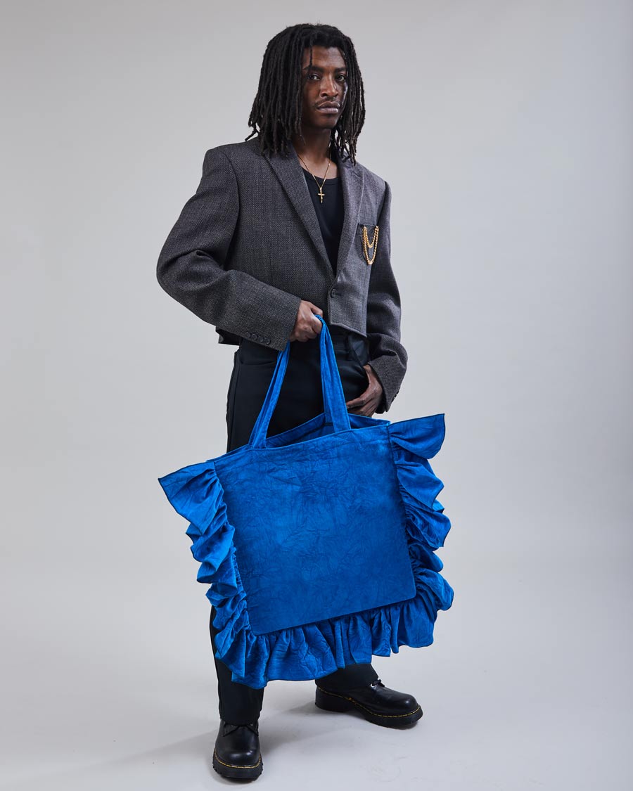 Introducing the Patsy Bag – where oversized meets sophistication in a uniquely stylish tote. Prepare to make a bold statement with this classy accessory that defies conventional boundaries Oversized is an understatement when it comes to the Patsy Bag. This tote boasts an impressive large ruffle design, setting it apart as a true standout piece in the world of accessories. The distinctive silhouette adds a touch of drama to your ensemble, making a statement that is both chic and eye-catching. What makes the Patsy Bag even more extraordinary is its commitment to sustainability. Crafted from vintage velvet curtains, this tote is a testament to the Rokit Originals team's dedication to reducing fashion waste.