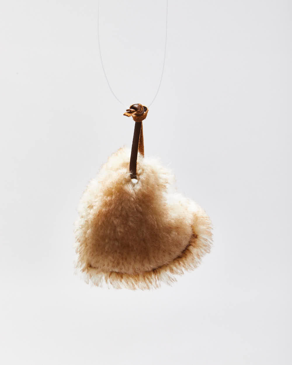 These are handmade in the studio from shearling and real leather, perfect for a gift, bag charm or hanging decoration.