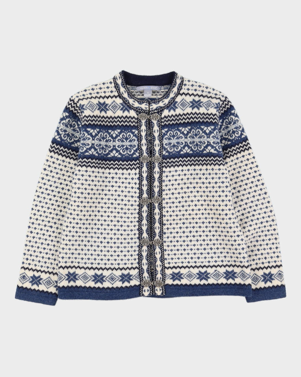 Scandi-Style Blue Patterned Knitted Cardigan - M