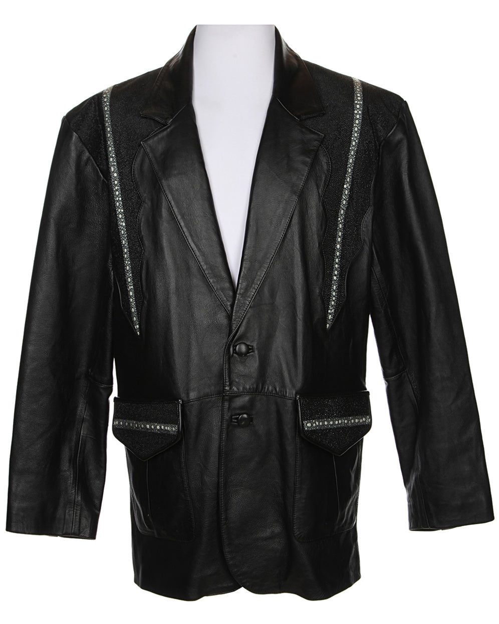 Vintage genuine stingray leather jacket in black with embellished front panels, yoke and pocket flaps. In excellent condition!