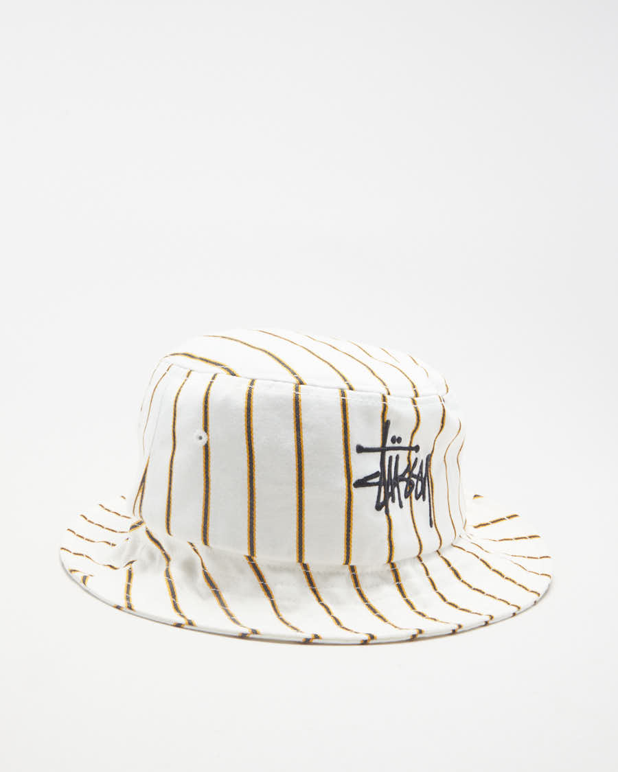 Stussy White Striped Bucket Hat Deadstock With Tags - L