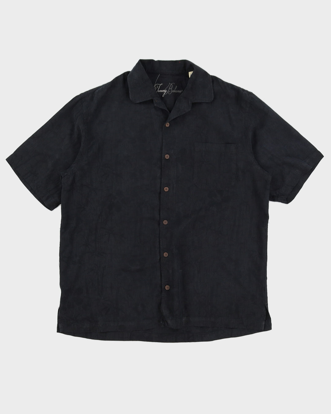 Tommy Bahama Black Hawaiian Short Sleeved Shirt With Embroidery On The Back - L