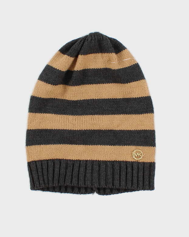 Unisex Stripped Tan Michael Kors Beanie - O/S