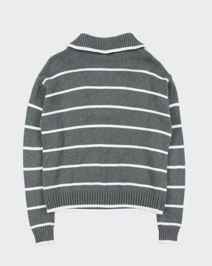 Vintage 00s Benetton Striped Quarter-Zip Funnel Knit Jumper - M