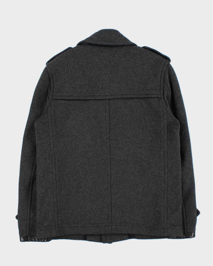Vintage 00s Burberry Brit Wool Nova Check Lined Naval Pea Coat - L