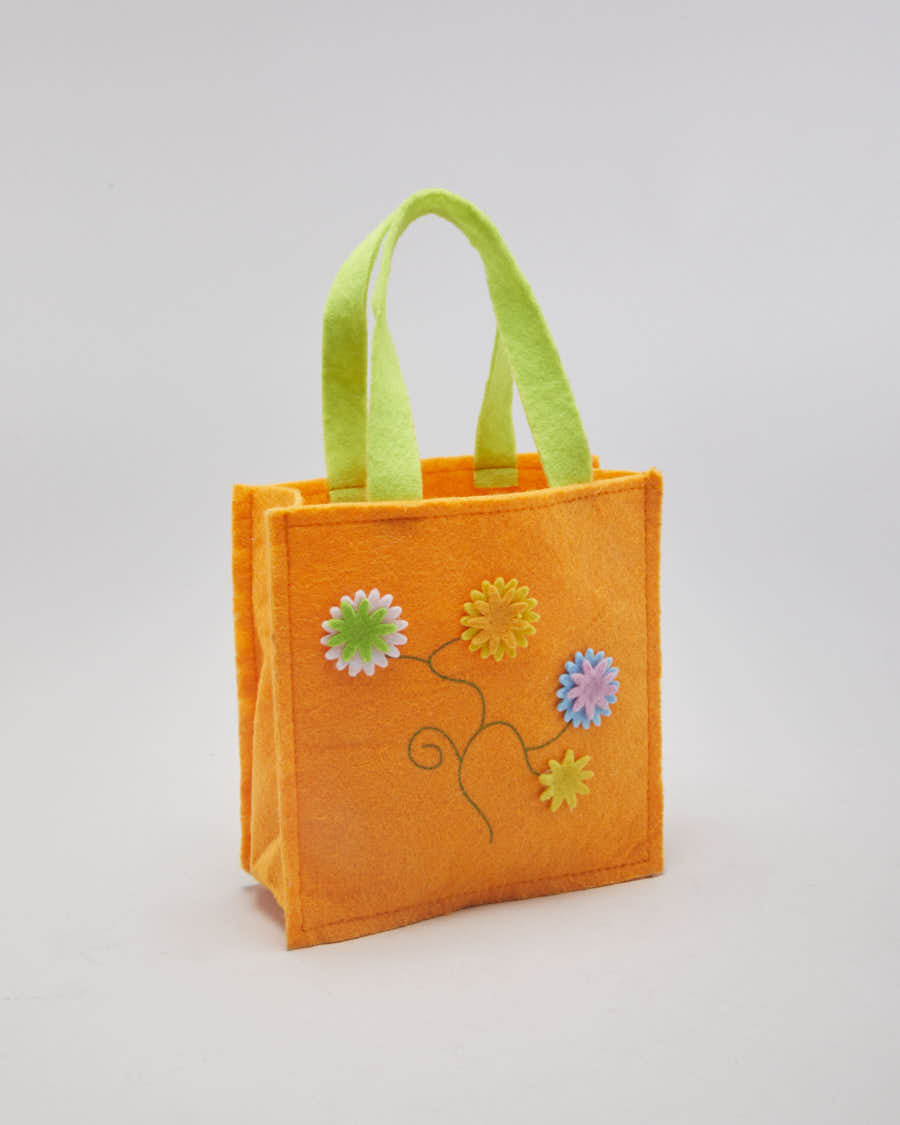 Vintage 00s Handmande Orange Felt With Flower Detail Handbag - O/S