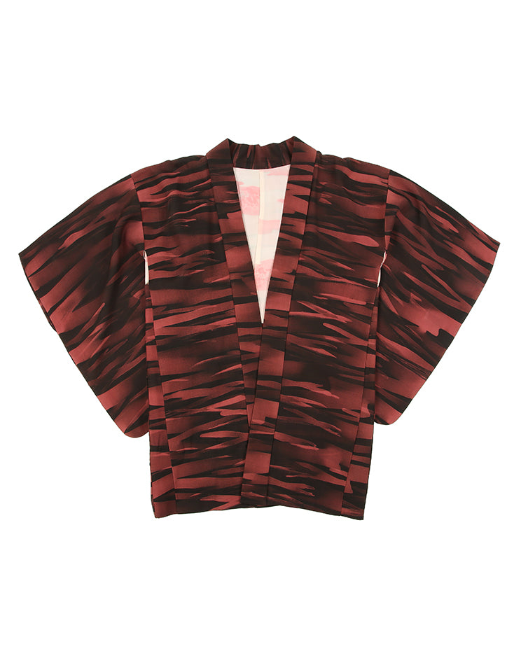 Original 1950's patterned haori kimono jacket in burgundy and black graphic pattern.