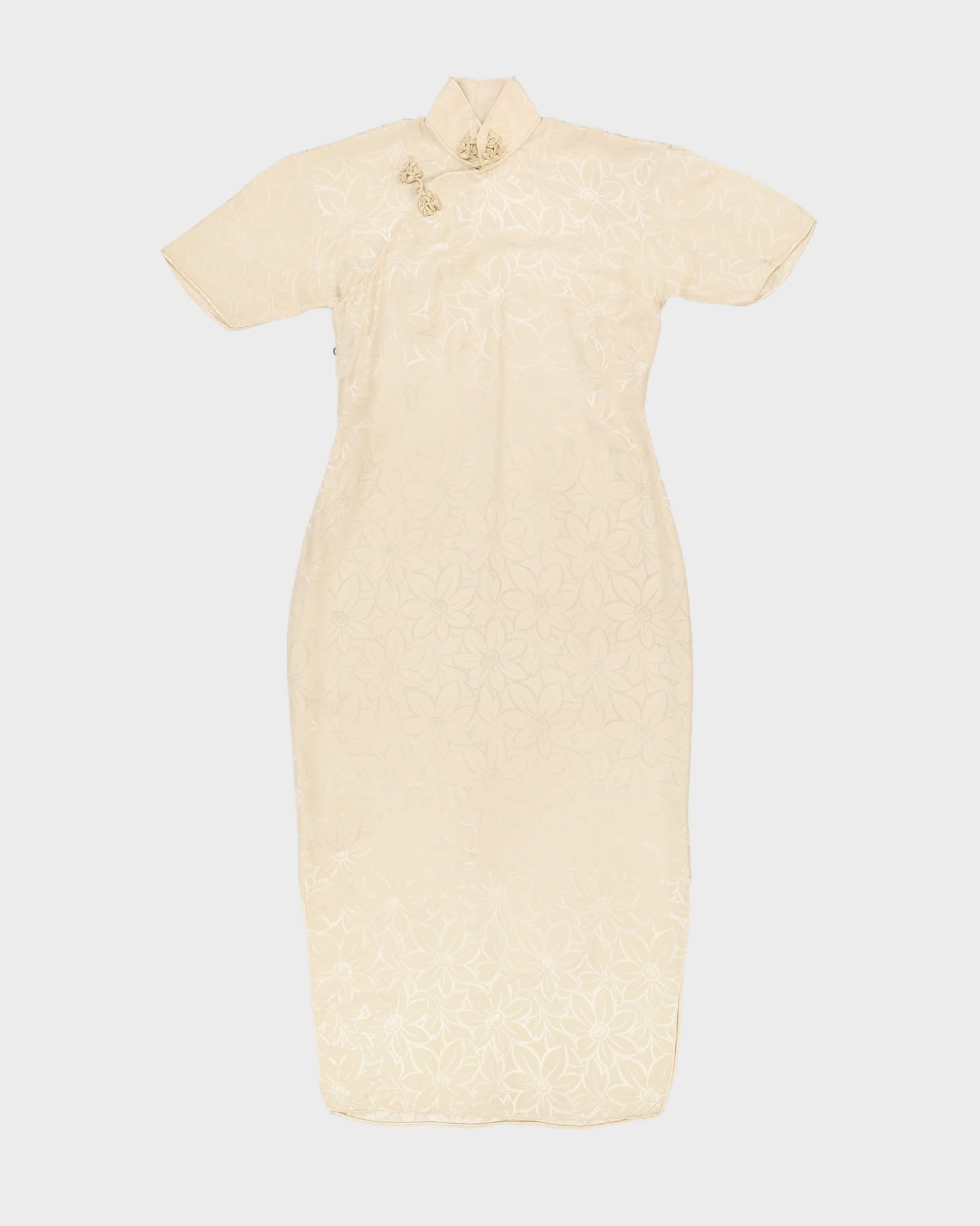Vintage 1950s Cream Silk Jacquard Cheongsam Dress - XS