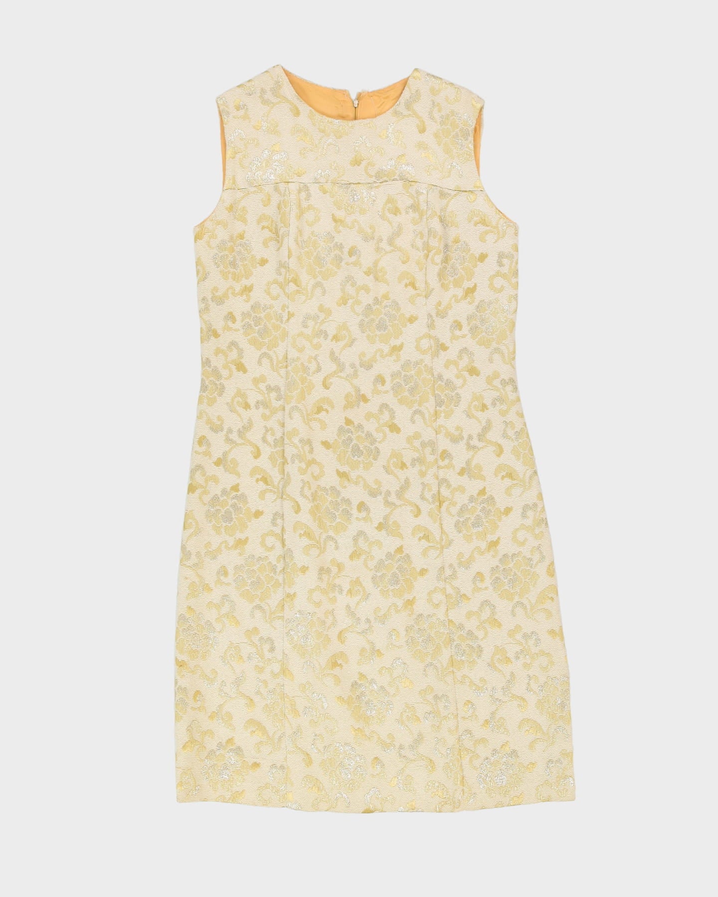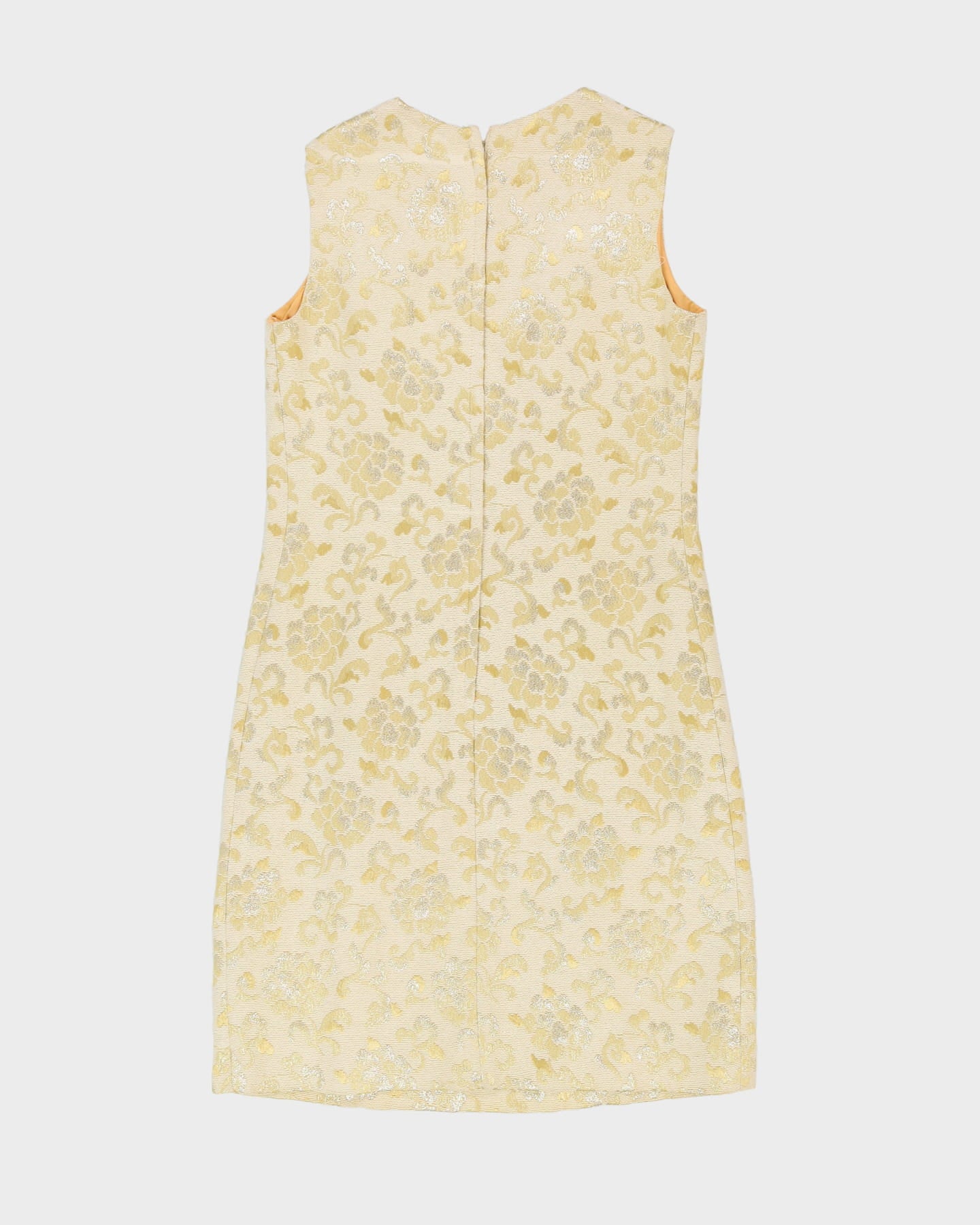 Vintage 1960s Cream With Gold Brocade Shift Dress - XS