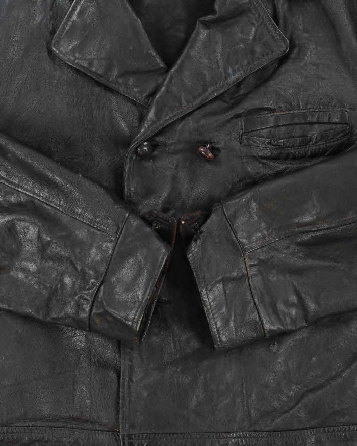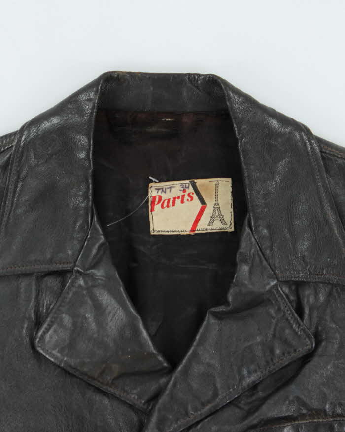 Vintage 1960s Paris Double Breasted Cropped Leather Jacket - M